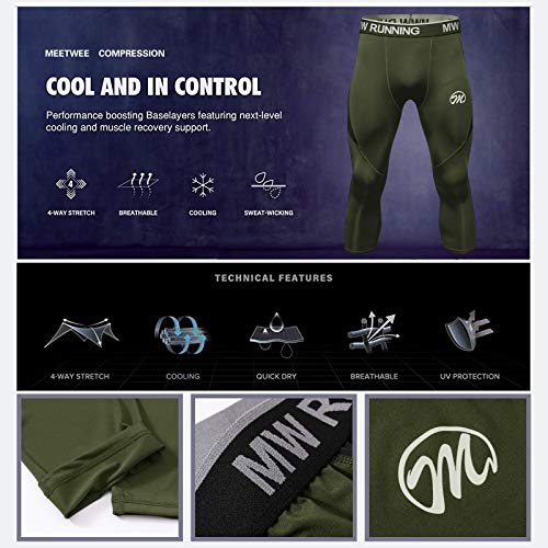 MEETWEE Leggings Hombre, 3/4 Mallas Running Pantalón de Compresión Pantalones Deporte para Fitness Yoga