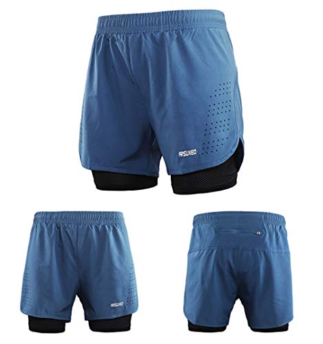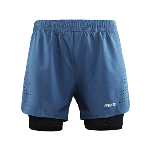 X-Labor Pantalones cortos de deporte 2 en 1 para hombre, pantalones cortos para correr, de malla, para fitness, gimnasio, yoga, correr, azul, EU 2XL (Tag:3XL)