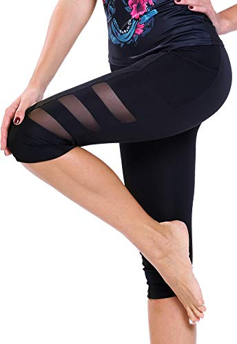 FITTOO Mallas 3/4 Leggings Mujer Pantalones de Yoga Alta Cintura Elásticos y Transpirables Malla L