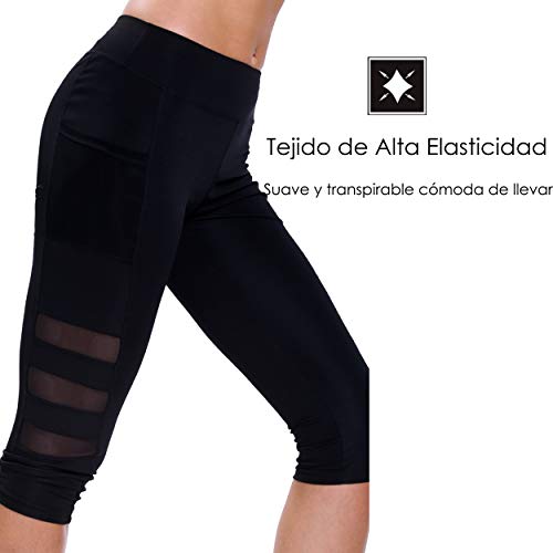 Ogeenier 3/4 Mallas Deportivas Mujer Pantalón Deportivo de Mujer Malla Deportivas Leggings para Yoga Fitness Gimnasio Running Estiramiento Pilates