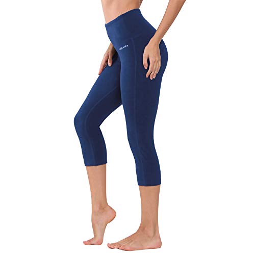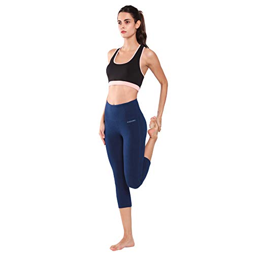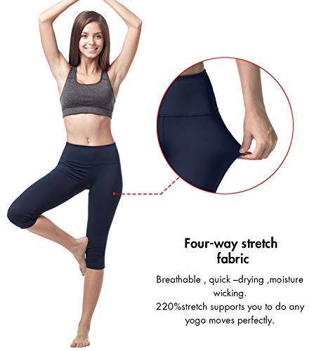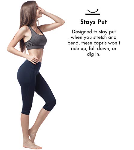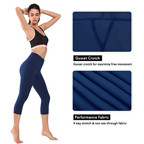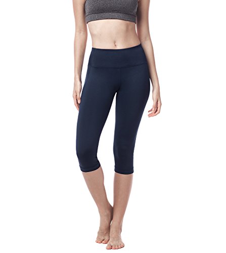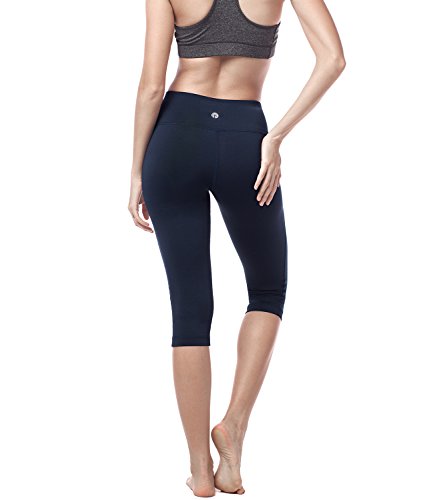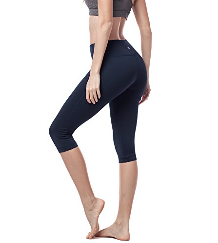 LAPASA Mallas Deportivas 3/4 Capris de Mujer Cintura Alta (Leggings para Yoga, Pilates, Running) L02 (XL/44 (Cintura 89-97, Cadera 103-112 cm), Deep Blue)