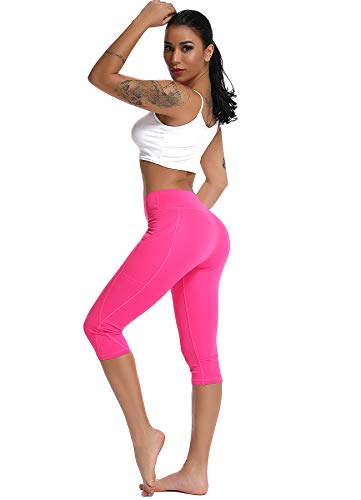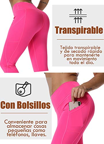 STARBILD Leggings 3/4 Mallas Pantalones de Alta Cintura Elástica Súper Transpirable Adelgazante de Yoga Deportivas Leggins para Mujer Rosa Roja XL