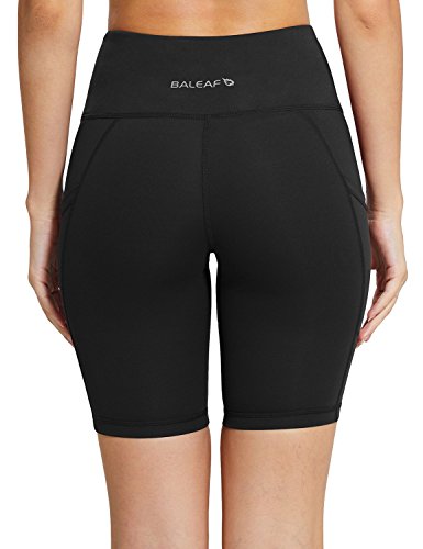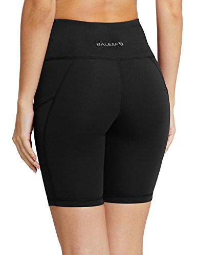 BALEAF - Malla compresiva corta con cintura alta y bolsillos laterales para mujer; para practicar yoga, ciclismo, running. Tallas normales y grandes - Negro - XXL