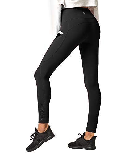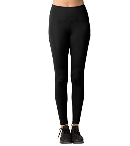 LAPASA Pantalón Deportivo de Mujer Cintura Alta con Bolsillo Malla para Running Yoga y Ejercicio. L01 (Space Black (Bolsillo Lateral), XL/44 (Cintura 89-97, Cadera 103-112 cm))
