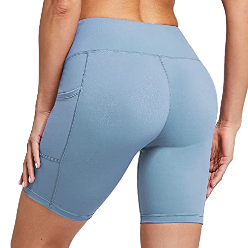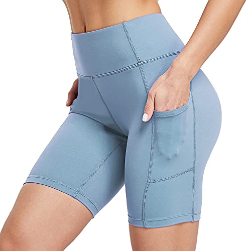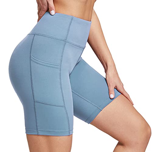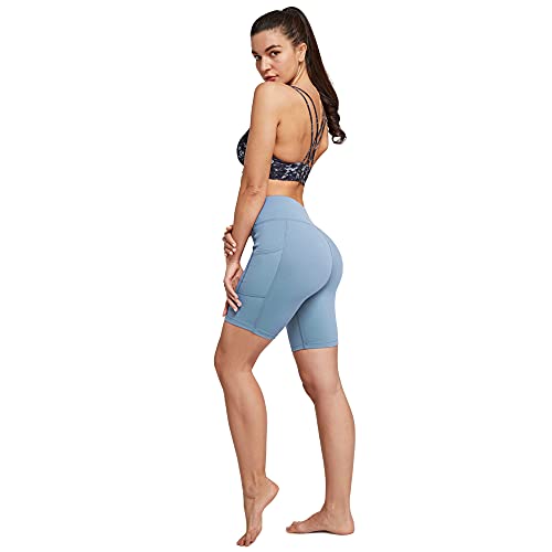 Ogeenier 8" Pantalones Cortos Deporte Mujer, Pantalon Corto Running Fitness Yoga Mallas Cortas con Bolsillos