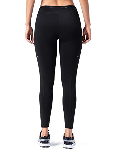 NAVISKIN Pantalones de Forro Polar Mujer Yoga Pilates Mallas Deportivas Leggings Largos Bolsillos Elástico Transpirable Training Running Fitness Negro M