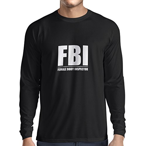 Camiseta de Manga Larga para Hombre Inspector del Cuerpo Femenino - Regalos Divertidos para los Hombres, Citas chistosas (Medium Negro Fluorescente)