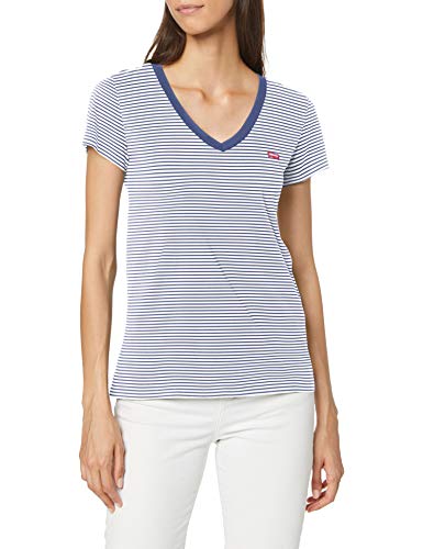 Levi's Vneck Camiseta, Annalise Stripe Blue Indigo 1, M para Mujer