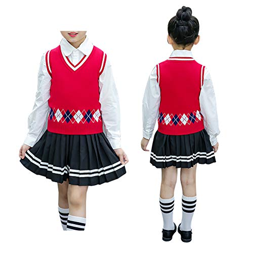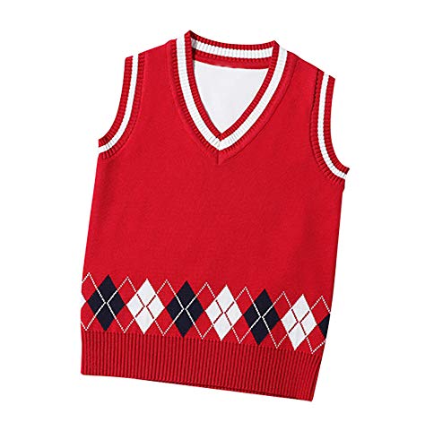 Suéter Jerseys Chaleco Prendas de Punto para Niños Niñas Ropa con V Cuello Sin Mangas Campus Estilo - Rojo 130