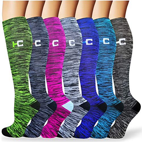 Calcetines de Compresión (7 pares) para Hombres y Mujeres para Enfermería Viaje Correr Circulación Recuperación Medias de Compresión