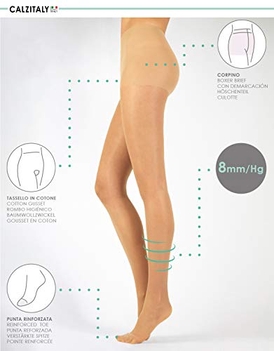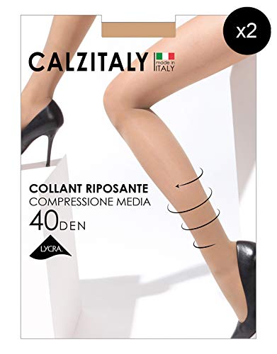 CALZITALY - 2 Pares Medias de Descanso | Pantimedias con Compresión Media 8 mm/Hg | 40 DEN | Negro, Natural | S, M, L,XL | Made in Italy | (XL, Natural)