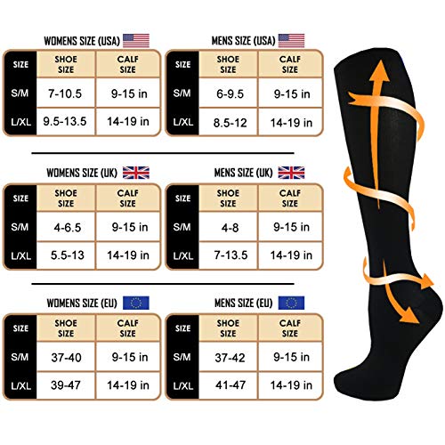 - SÓLO SE AJUSTA CORRECTAMENTE: hay dos opciones de tamaño disponibles. El mejor regalo para mujeres, enfermeras y médicos, atletas y corredores, oficinistas ... ya sea atleta, enfermera, maestra, asistente de vuelo, recepcionista, oficinista, mujer embarazada, paciente en recuperación, madre lactante o persona mayor. Nuestros calcetines tienen un efecto positivo en su salud y bienestar.