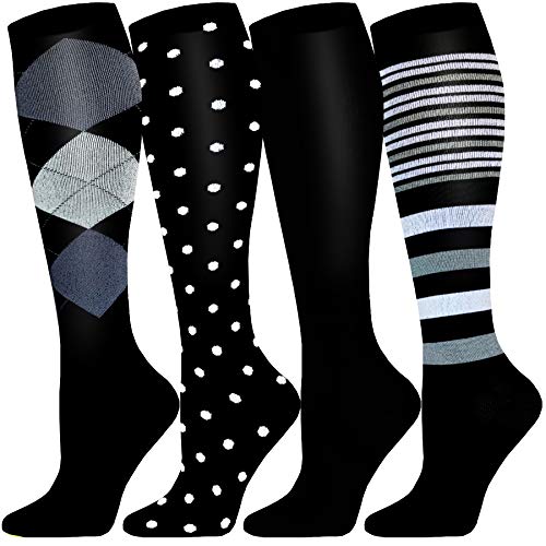 ACTINPUT 4 Pares Calcetines de Compresión para Hombres y Mujeres Medias de Compresión, Correr, Senderismo, Volar, Viajar, Varicosas, Médico, Deportivo, Embarazo