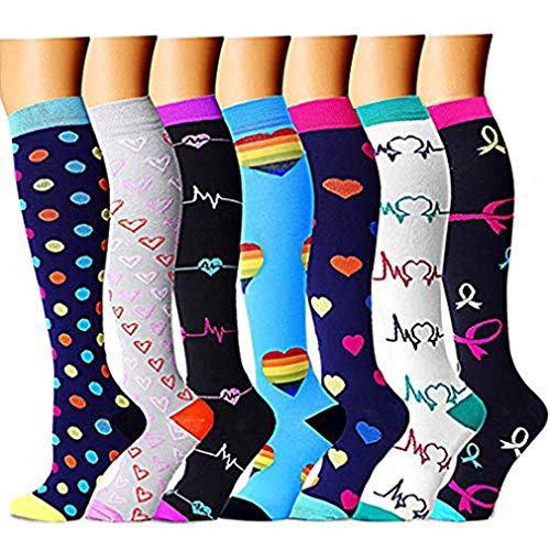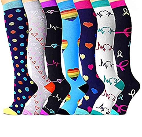 Calcetines de Compresión (7 pares) para Hombres y Mujeres para Enfermería Viaje Correr Circulación Recuperación Medias de Compresión