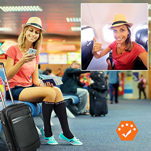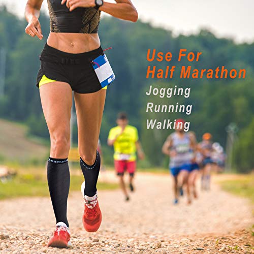 - Calcetines de compresión deportivos para hombres y mujeres, mejora la circulación sanguínea, permite una rápida recuperación de los músculos en pantorrillas, pies, tobillos y piernas. Especialmente diseñado para reducir lesiones, ofrecer la máxima comodidad. El tejido de licra de alta calidad para una comodidad agradable y facilita tus piernas doloridas inmediatamente en crossfit, fitness, senderismo, triatlón, fútbol, media maratón o correr, vuelo, embarazo y fines médicos.