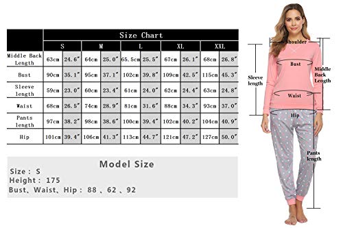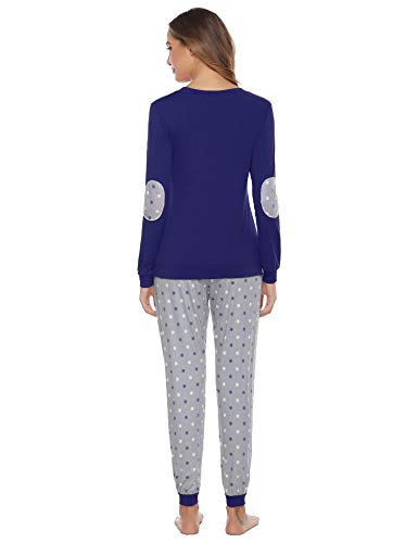 Hawiton Pijamas Mujer Invierno, Pijamas de algodón,Mangas Larga Camiseta y Pantalones de Lunares ondulados Conjunto de Ropa de Dormir 2 Piezas,Tallas Grandes, Azul, Marino, L