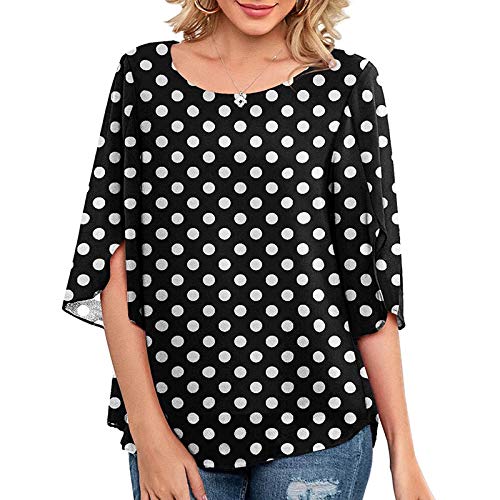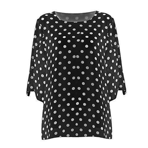 N / D Camiseta de Media Manga Camisa Mujer Verano con Estampado Lunares Diseño Retro Casual Suelto Cómodo Cuello Redondo Talla Grande Tops