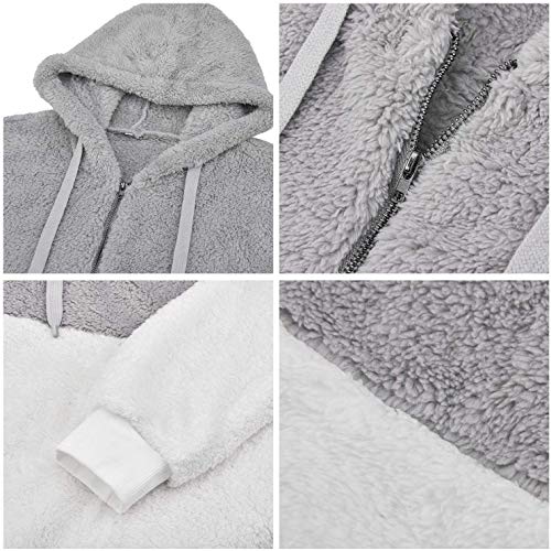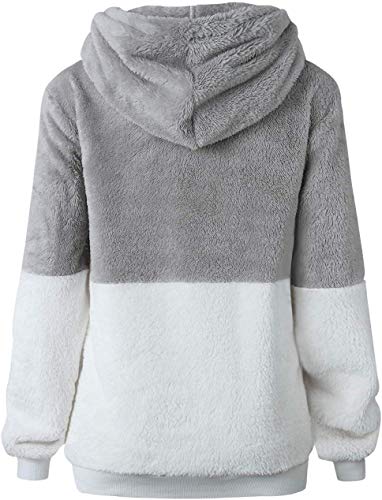 Bwiv Sudadera Mujer con Capucha Caliente Flexible Invierno Otoño en Piel Sintética Multi Color Chaqueta Polar Casual Moda Amplio Gris Claro y Blanco Empalme Talla M