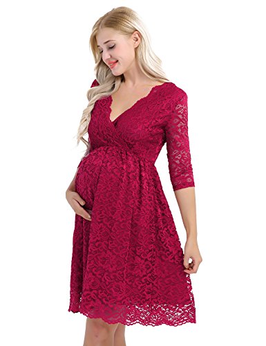 - Características: Manga corta, Cuello v, Encaje floral , Vestido de Maternidad para boda, fiesta, ceremonia. Se puede usar durante y después del embarazo.