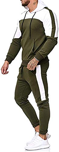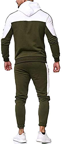 chándal para Hombre, Moda Casual otoño e Invierno Chandal Completo para Hombre Sudadera con Capucha de Manga Larga + Pantalones Deportivos Conjuntos (Verde,M)