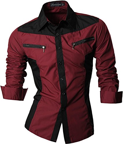 jeansian De Manga Larga De Los Hombres De Moda Slim Fit Camisas Men Fashion Shirts Z018 Winered XL