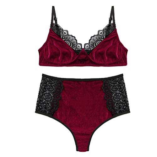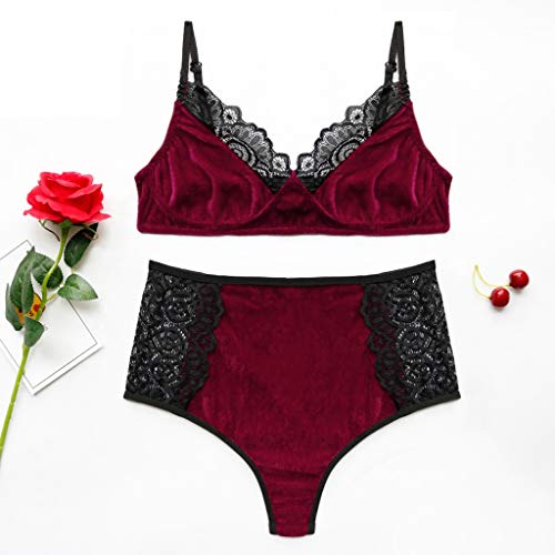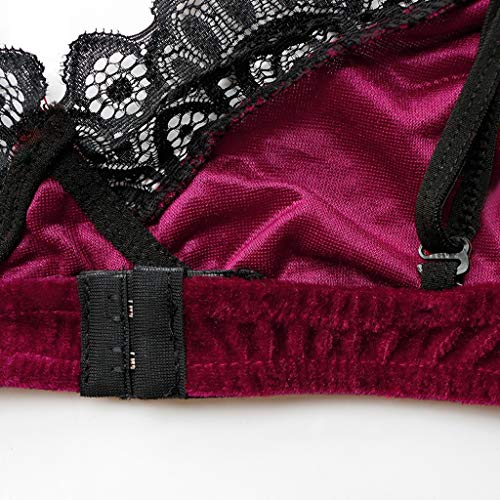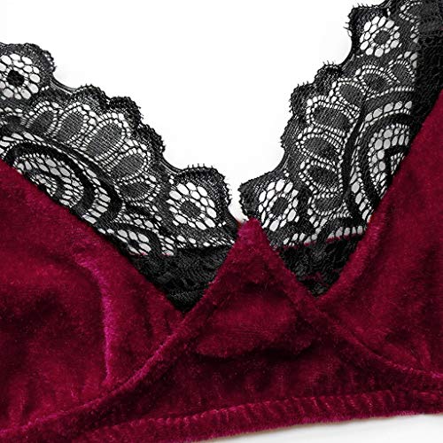 KIMODO Moda para Mujer Talla Grande Sujetador Plus Contraste de Terciopelo de Encaje Mujer Sexy Conjuntos Ropa de Dormir de lencería Ropa de Dormir