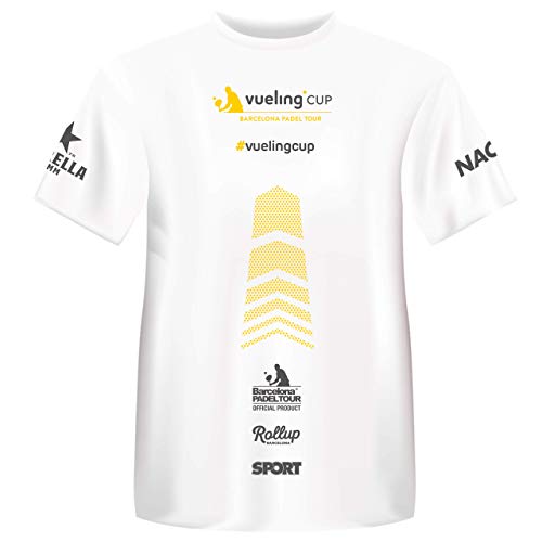 Barcelona Padel Tour | Camiseta Manga Corta Técnica Vueling Cup Hombre | Estampación Especial de Pádel | De Tacto Suave y Secado Rápido | Ropa Deportiva Blanco Puro L