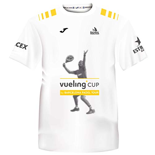 - CARACTERÍSTICAS: Camiseta de padel para hombre Joma Vueling Cup by Barcelona Padel Tour de manga corta y cuello redondo. Fabricada en Poliéster Interlock. Tejido muy elástico y de alta calidad, especialmente dirigido a la práctica deportiva. Esta camiseta destaca por su tacto suave, y un secado rápido y sin arrugas. Máximo confort para la práctica deportiva, con estampación especial para pádel. Equipación ideal de alta calidad para los amantes de este deporte.
