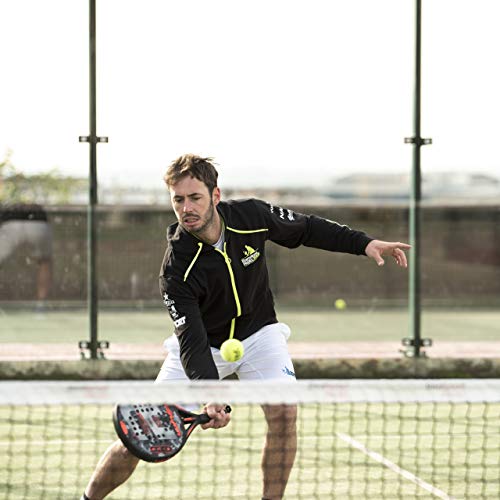 - CARACTERÍSTICAS: Chaqueta Unisex de felpa no perchada. De manga larga con cremallera y detalles a contraste en color. Máximo confort para la práctica deportiva, equipación ideal de alta calidad para los amantes del pádel, con estampación especial. Capucha con forro interior en tejido de poliéster microperforado en contraste a color, con cordón y ojales metálicos en contraste a color. Dos bolsillos frontales con vivo ancho.