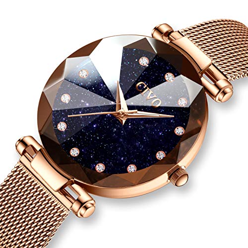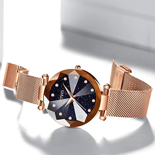 CIVO Relojes para Mujer Reloj Damas de Malla Impermeable Lujo Minimalista Oro Rosa Elegante Banda de Acero Inoxidable Relojes de Pulsera Moda Vestir Negocio Casual Reloj de Cuarzo (Azul)