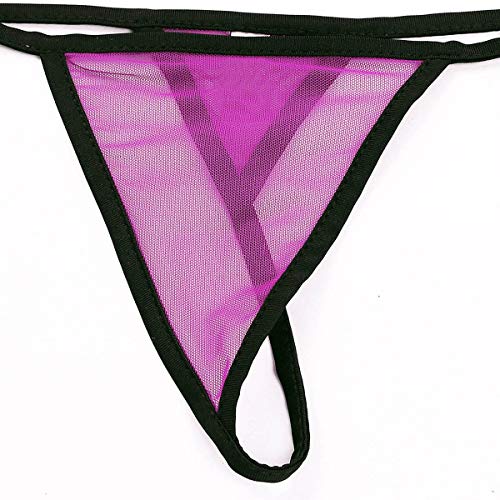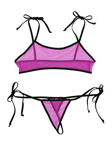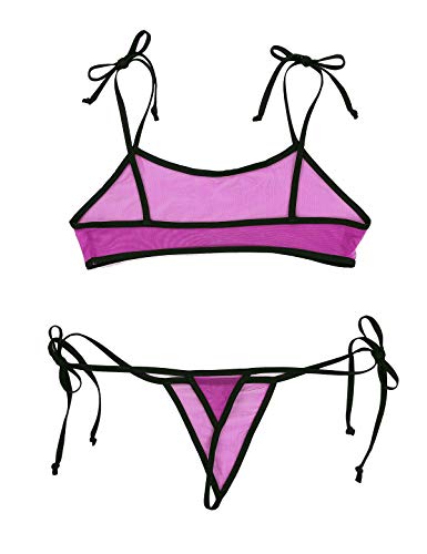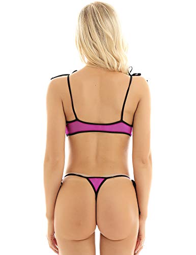 MSemis Micro Bikini Transparente para Mujer Lencería Top de Malla Tanga de Tiras Bikini Push Up Sexy Ropa Erótica Noche Traje de Baño Vacaciones Playa Rosa Negro Talla Única