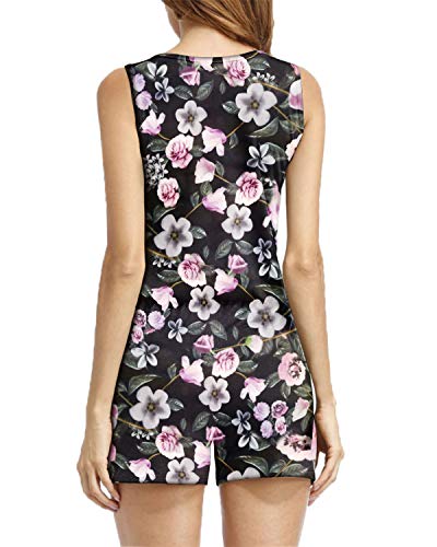 Auxo Mujer Monos Cortos Verano Estampado Sexy Jumpsuits Mono Deportivo Talla Grande Cuello V Sin Mangas 04-Negro XXL
