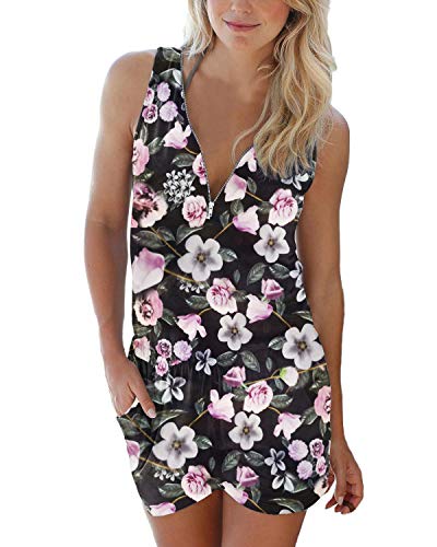 - Características: Mono mujer sin mangas,Estampado floral, Cremallera sexy con cuello en V , Tops sin mangas, Color liso, Cintura con cordón, Monos sueltos casuales, Pantalones cortos de mamelucos cortos con bolsillos, Te hacen más Sexy y encantador. Un esencial para cada mujer de moda. Fácil de combinar con diferentes estilos de ropa.