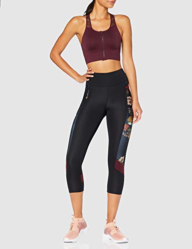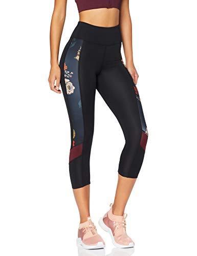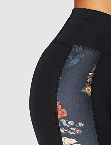 Marca Amazon - AURIQUE Mallas de Deporte Cortas Mujer, Negro (Black/Floral Print), 36, Label:XS