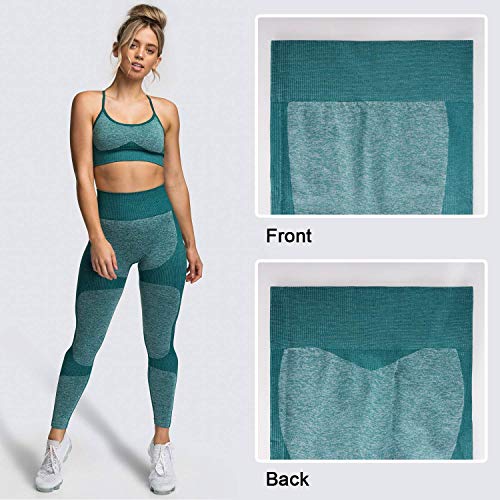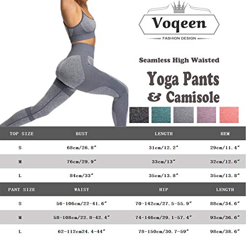 Voqeen Camisola y Pantalones de Yoga de Punto Sin Costuras para Mujer, Mallas Elásticas de Cintura Alta, Mallas para Correr, Deporte, Gimnasio, Entrenamiento