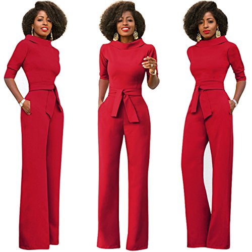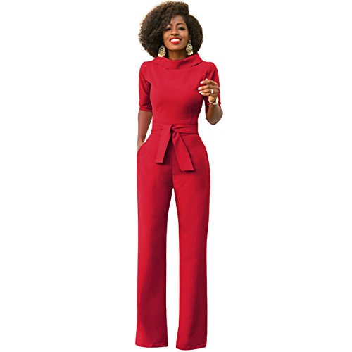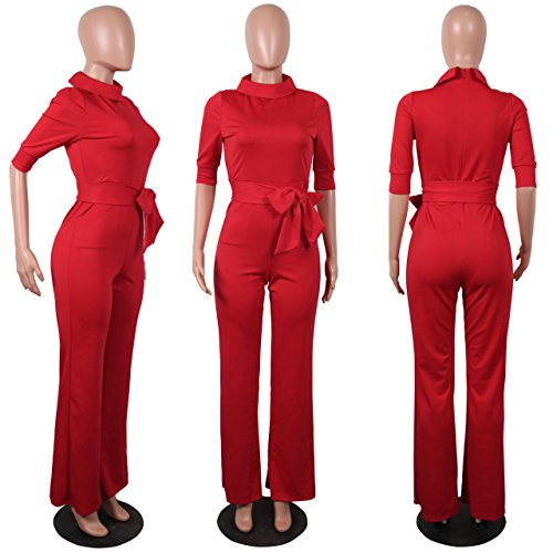Mono Mujer Rojo Largo Fiesta Talla Grande 1/2 Mangas Jumpsuits Elegante Pantalones Pierna Ancha con Cinturón para Playa business oficina y Fiesta Cóctel Party Clubwear Noche S