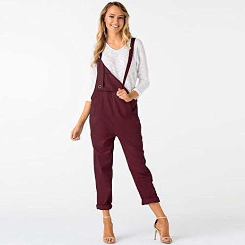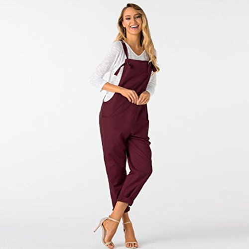 QinMM Petos de Pantalones Largos Casual Playa Fiesta Noche Cóctel para Mujer Mono (Rojo, S)