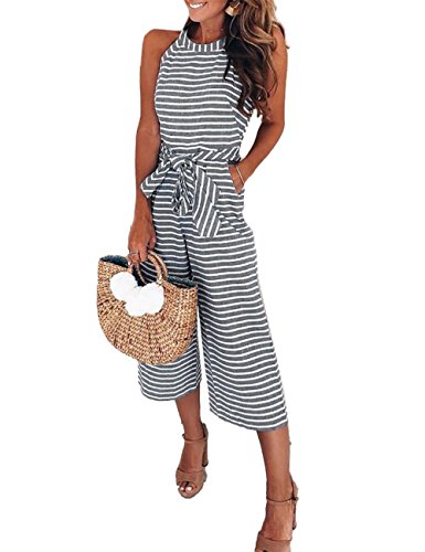 UUAISSO Mono para Mujer Sin Mangas De Las Mujeres Pantalones de Pierna Ancha Ocasionales para Primavera Verano, Gris M