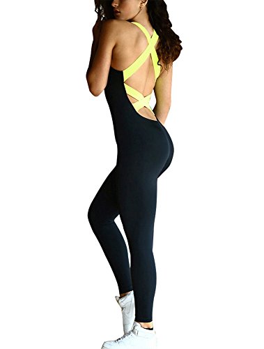 Minetom Las Mujeres Elásticos Sports Cintura Deportivos Sin Mangas Pantalones Sin Espalda De Deporte Mosaico De Mono Fitness Yoga Amarillo EU XS