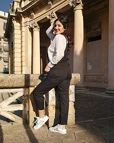 FeelinGirl Mujer Mono Raya Enterizo Pantalón Talle Alto con Cinturilla Negro L