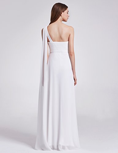 Ever-Pretty Vestido de Gala Gasa Un Hombro Corte Imperio Plisado sin Mangas para Mujer Blanco 36