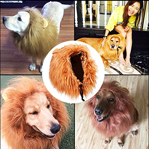 MiLuck Lion Mane peluca para perro y gato Disfraz con orejas Mascota ajustable cómodo Fancy León pelo perro ropa para Halloween Actividad de fiesta del festival de Pascua(Dog-Light Brown)
