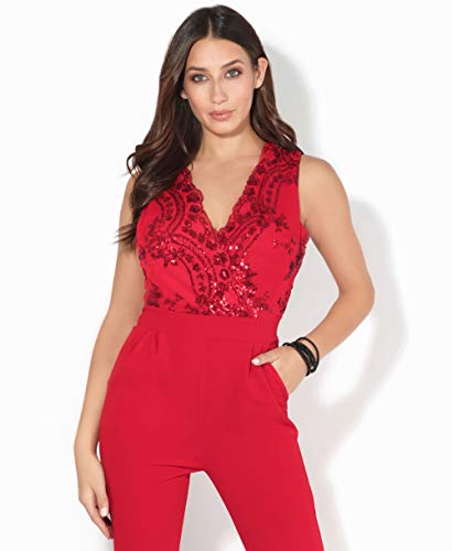 KRISP Mono Mujer Invitada Boda Elegante Barato Fiesta Noche Tallas Grandes Pitillo Vestir, (Rojo (5747), L), 5747-RED-L
