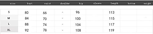 - L:Busto90CM;Cintura78CM;Cadera102CM;Longitud142CM; XL:Busto94CM;Cintura82CM;Cadera106CM;Longitud143CM; XXL:Busto98CM;Cintura86CM;Cadera110CM;Longitud144CM; 3XL:Busto102CM;Cintura90CM;Cadera114CM;Longitud145CM; 4XL:Busto106CM;Cintura94CM;Cadera118CM;Longitud146CM;