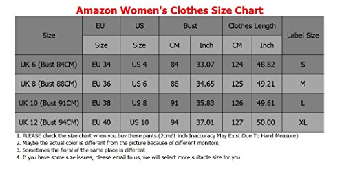 - Información de tamaño(cm): S(ES 36)--Pecho:95cm, Cintura: 60-90cm, cadera: 95cm, Longitud: 131cm M(ES 38)--Pecho:100cm, Cintura: 66-96cm, cadera: 100cm, Longitud: 132.5cm L(ES 40)--Pecho:105cm, Cintura: 72-102cm, cadera:106cm, Longitud:134cm XL(ES 42)--Pecho:111cm, Cintura: 78-108cm, cadera:115cm, Longitud:135.7cm