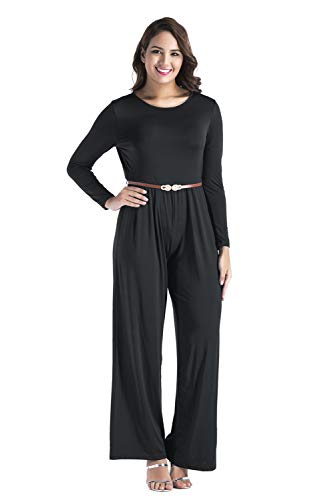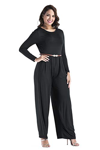 Mujer Rojo Largo Fiesta Talla Grande Mangas Largas Slim Monos Jumpsuits Elegante Pantalones Pierna Ancha con Cinturón para Playa Business Oficina y Fiesta Cóctel Party Clubwear Noche