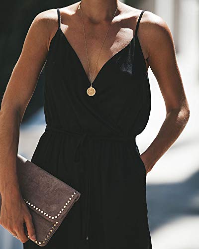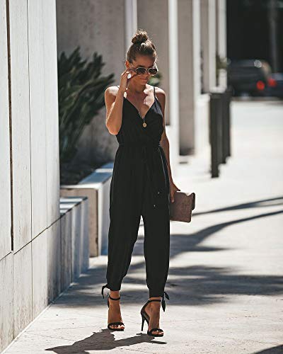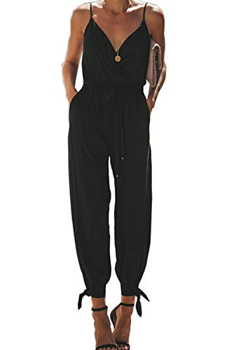 Longwu Mujer Casual Suelto Sin Mangas Mono Cordón de Cintura Mamelucos en General con Bolsillos Negro-S
