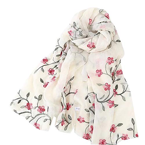 Pluto & Fox Fular De Mujer Bordado Con Flores Bufanda De Seda Diseño Retro Elegante Pañuelo cuello Estola (Beige, 75cm*175cm)