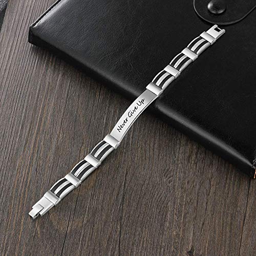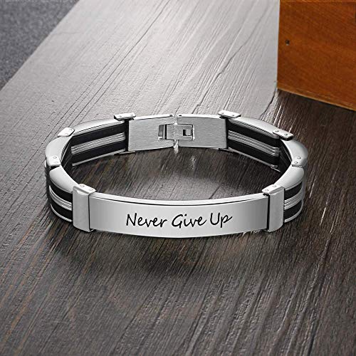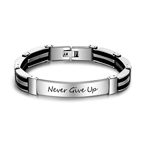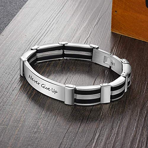 Grand Made Nombre personalizado Pulsera de acero inoxidable con pulsera grabada Pulsera personalizada Nombre Pulsera de emergencia Pulsera para mujeres (Patrón de rayas, Acero inoxidable)