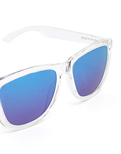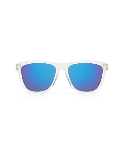 HAWKERS Gafas de Sol, Hombre y Mujer, con Montura Transparente y Lente Azul con Efecto Espejo, Protección UV400, Air · Sky TR18, One Size Unisex-Adult